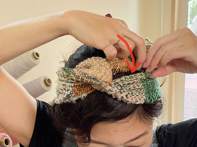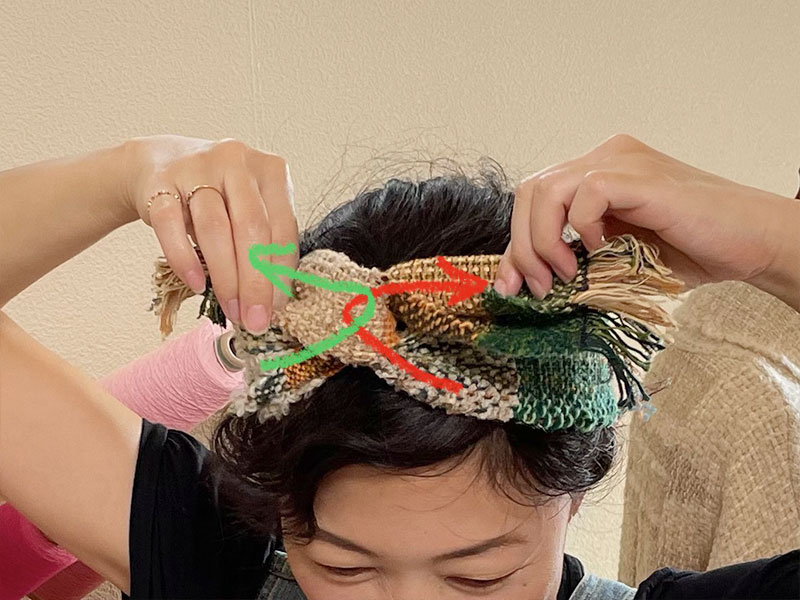 仕上がりがこちら!この織布を縫ったりせずに、巻くだけでヘアバンドにします。