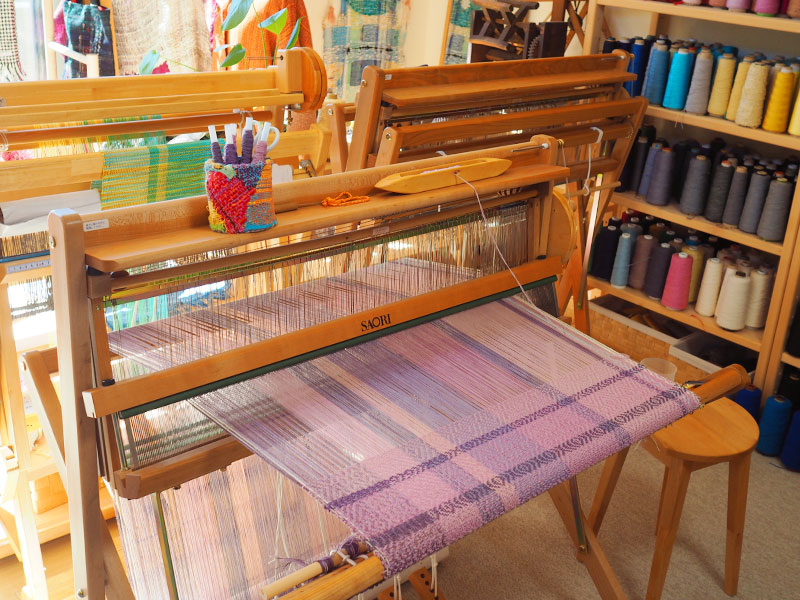 縦糸の張り方や様々な織り方、仕上げまで学び、仕上がった織布を小物や服、タペストリーなどの作品に出来ます。